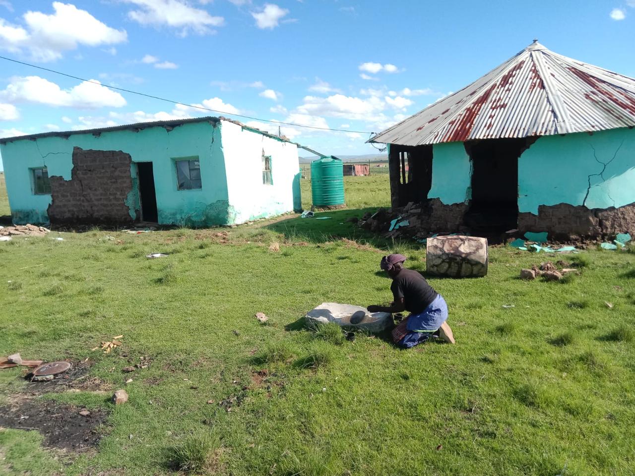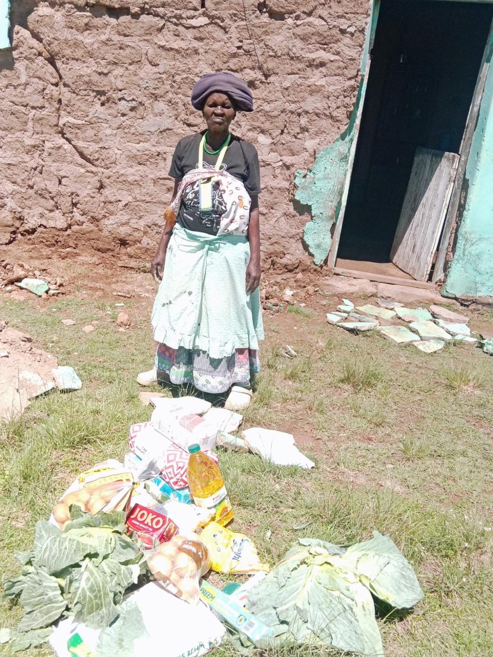 Hloyi Nothozamile, who is over eighty years old, is currently residing with her neighbors after her house collapsed. Due to her advanced age and poor health, she is struggling to take care of herself and carry out daily tasks.